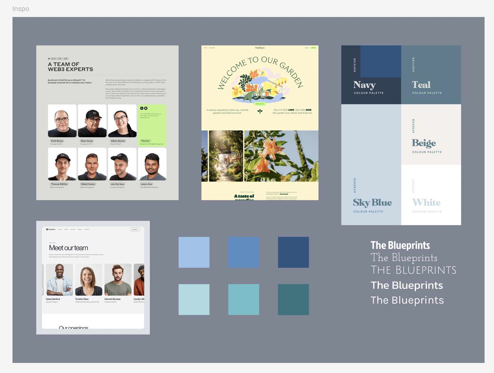 Working with four other people, each with primary, secondary, or tertiary roles in project management, design, development, and data architecture, our first assignment entailed creating a project page. This project page established our group name “Blueprints” and based our color palette, font, and style around this concept.